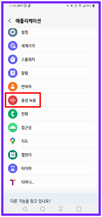워치설정 → 애플리케이션 → 음성녹음 → 앱설정 으로 들어가시면 됩니다